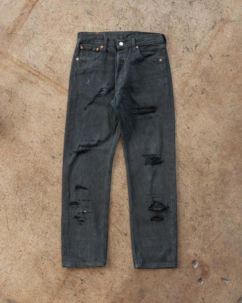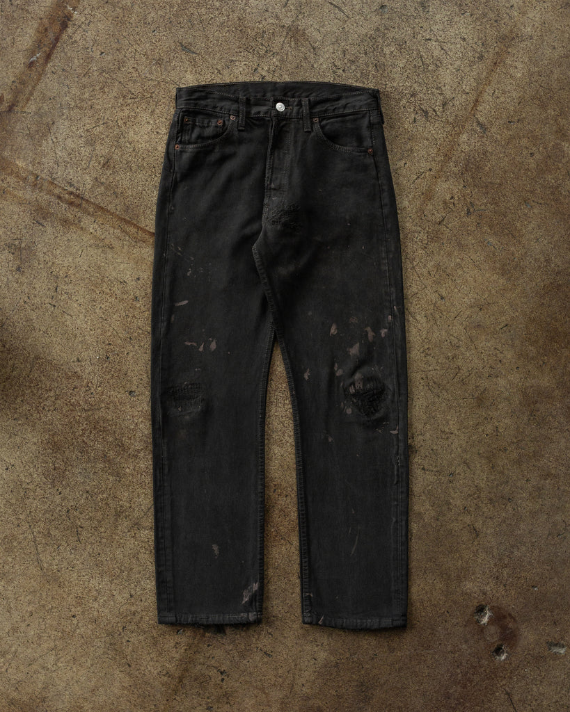 Levi's 501 Black Repaired Painted Jeans - 1990s