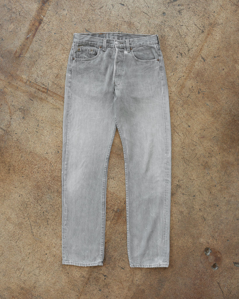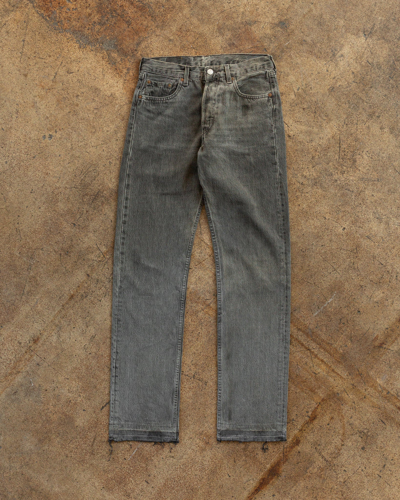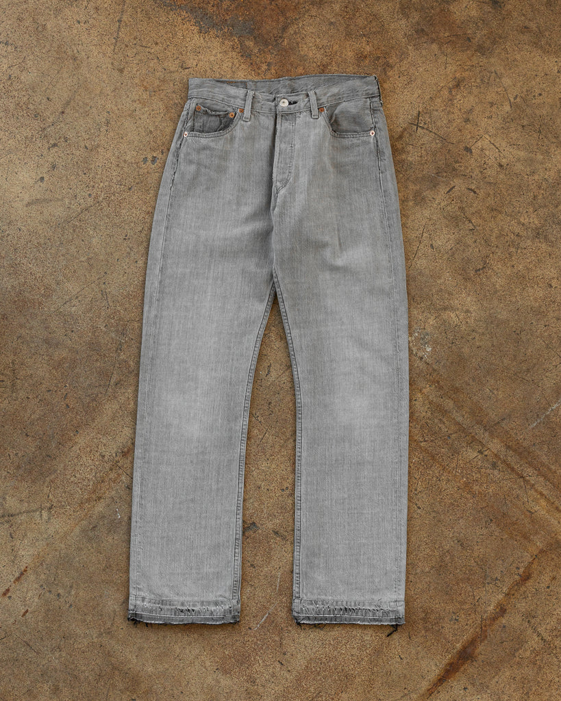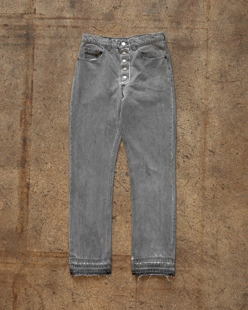 Levi's 501 Faded Grey Released Hem Repaired Jeans - 1990s