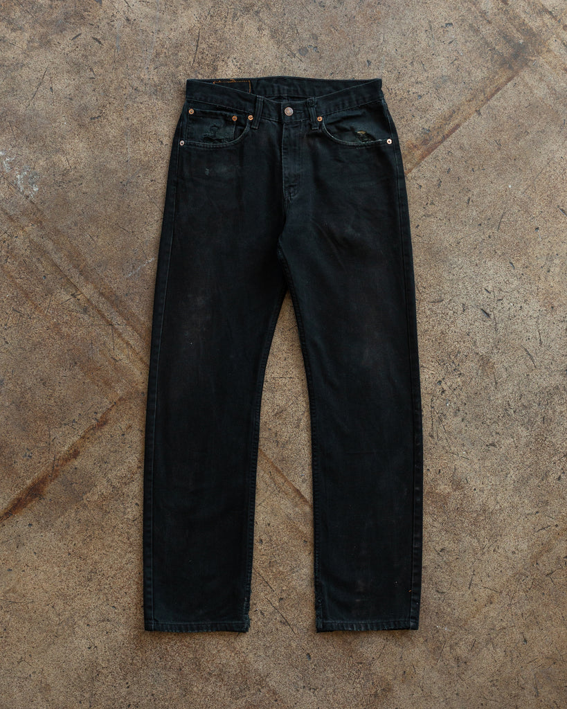 Levi's 751 Faded Black Repaired Jeans - 1990s