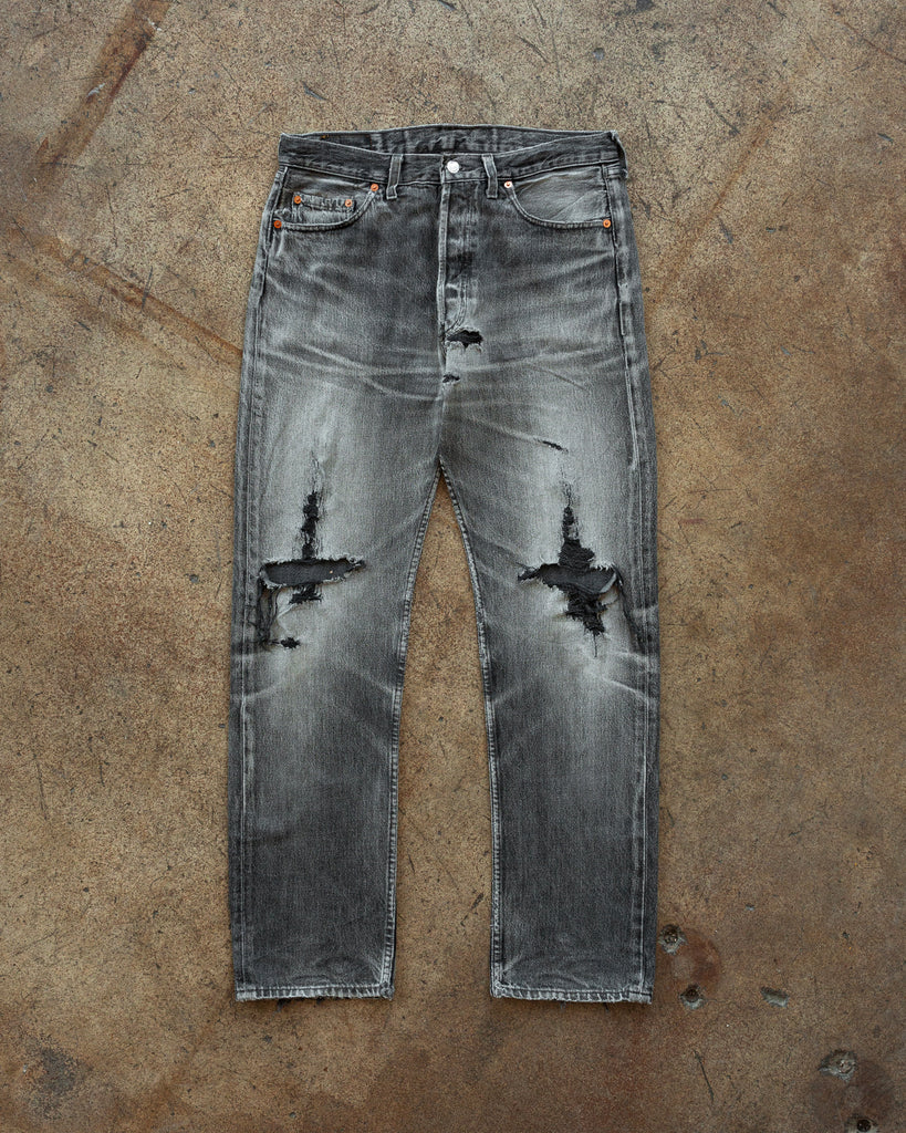 Levi's 501 Distressed Charcoal Jeans - 1990s