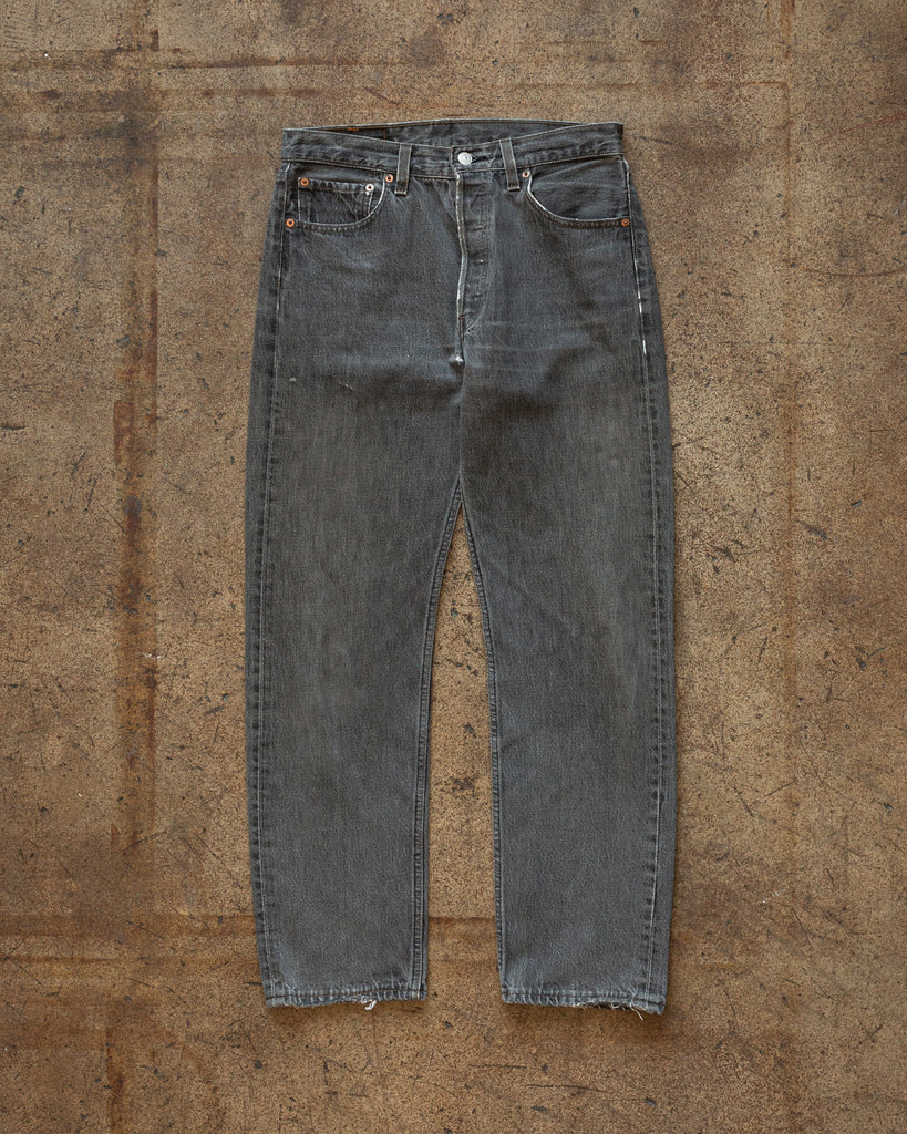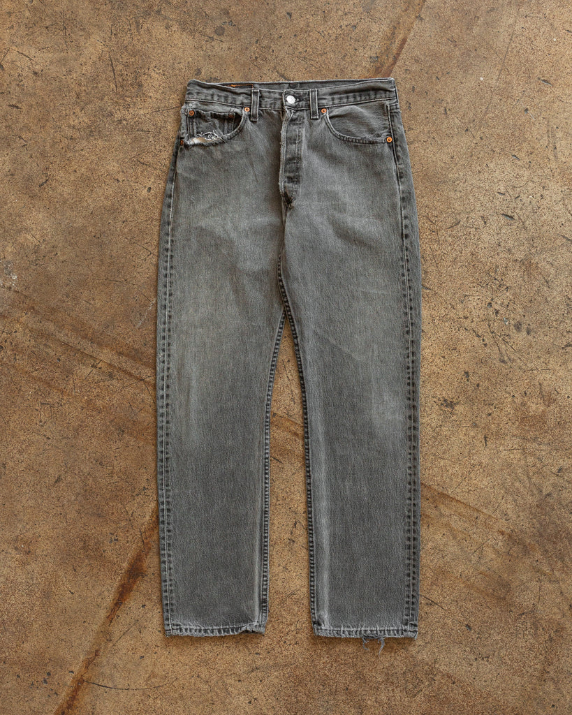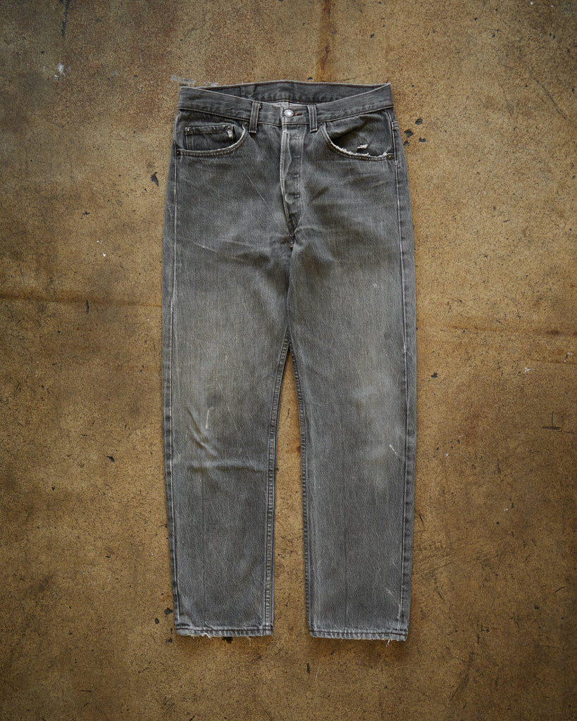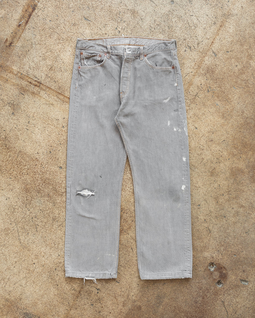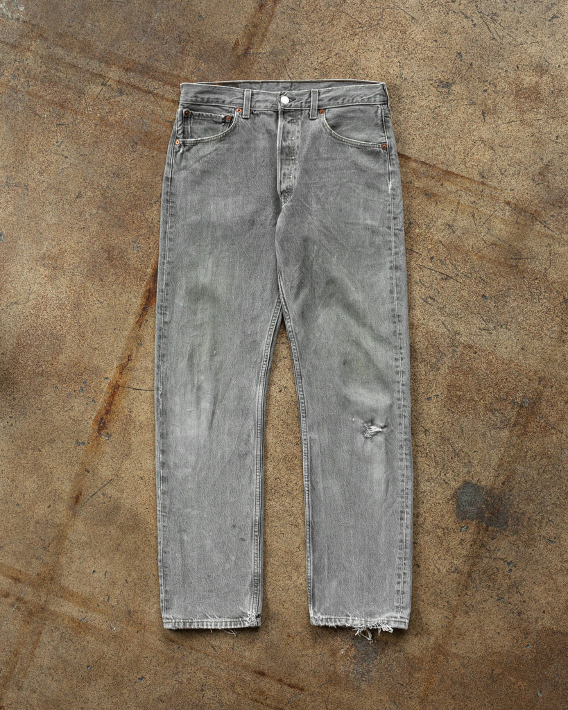 Levi's 501 Faded Grey Released Hem Repaired Jeans - 1990s