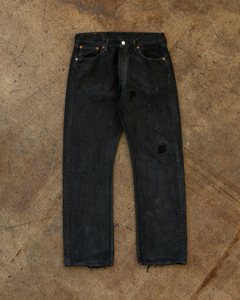 Levi's 501 Faded Black Repaired Jeans - 1990s