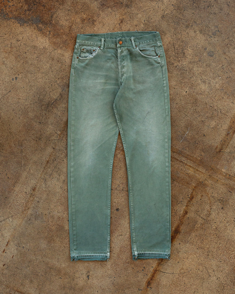 Levi's 501 Faded Emerald Green Repaired Jeans - 1990s