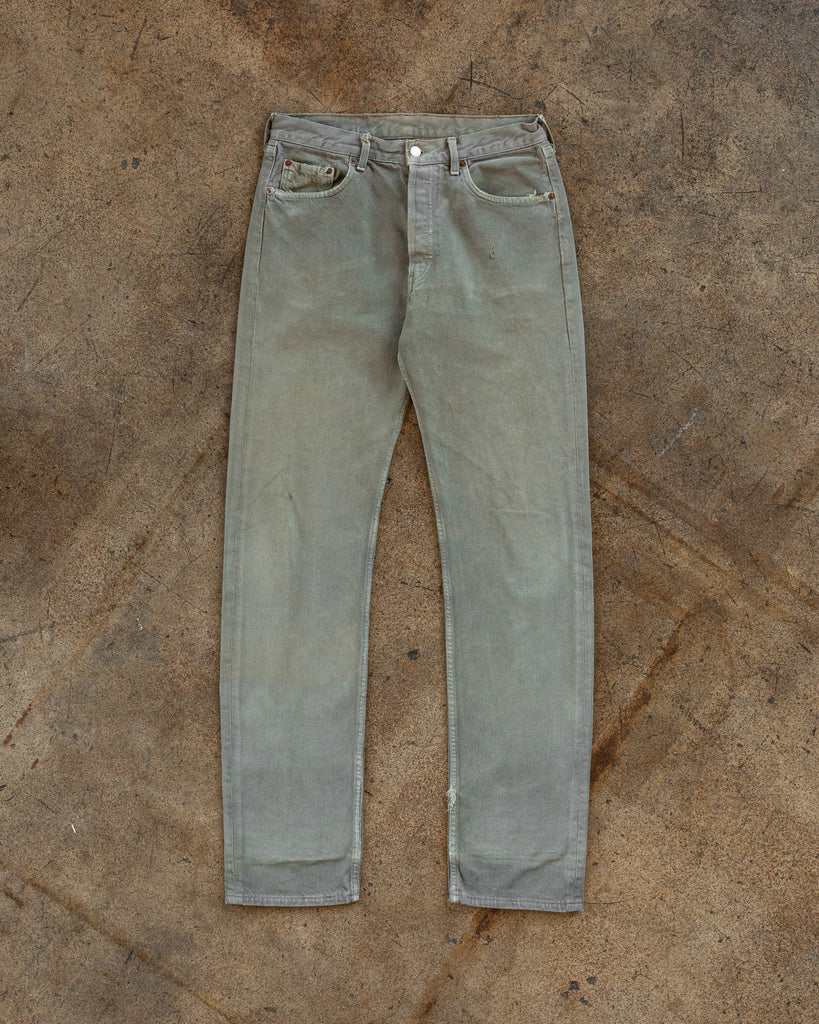 Levi's 501 Grey Green Repaired Jeans - 1990s