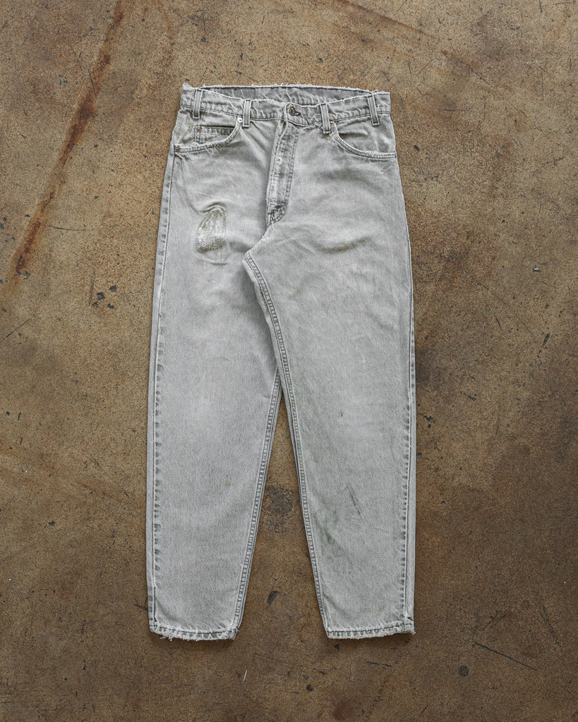Levi's 550 Orange Tab Light Grey Repaired Jeans - 1990s