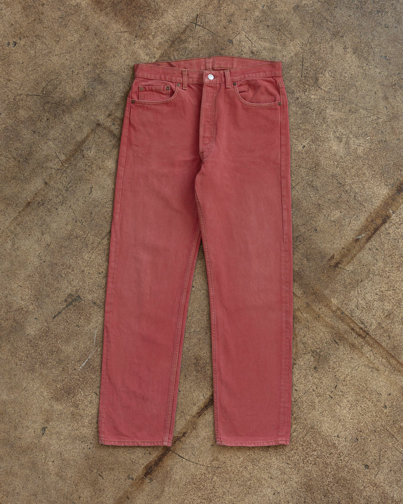 Levi's 501 Faded & Painted Ox-Blood Released Hem Jeans - 1990s