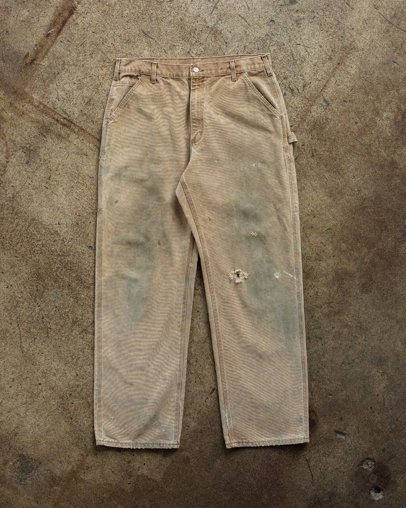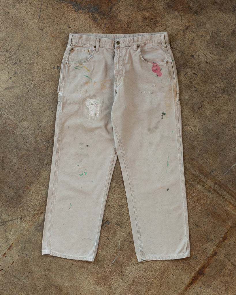 Carhartt Tan Distressed & Painted Double Knee Work Pants - 1990s