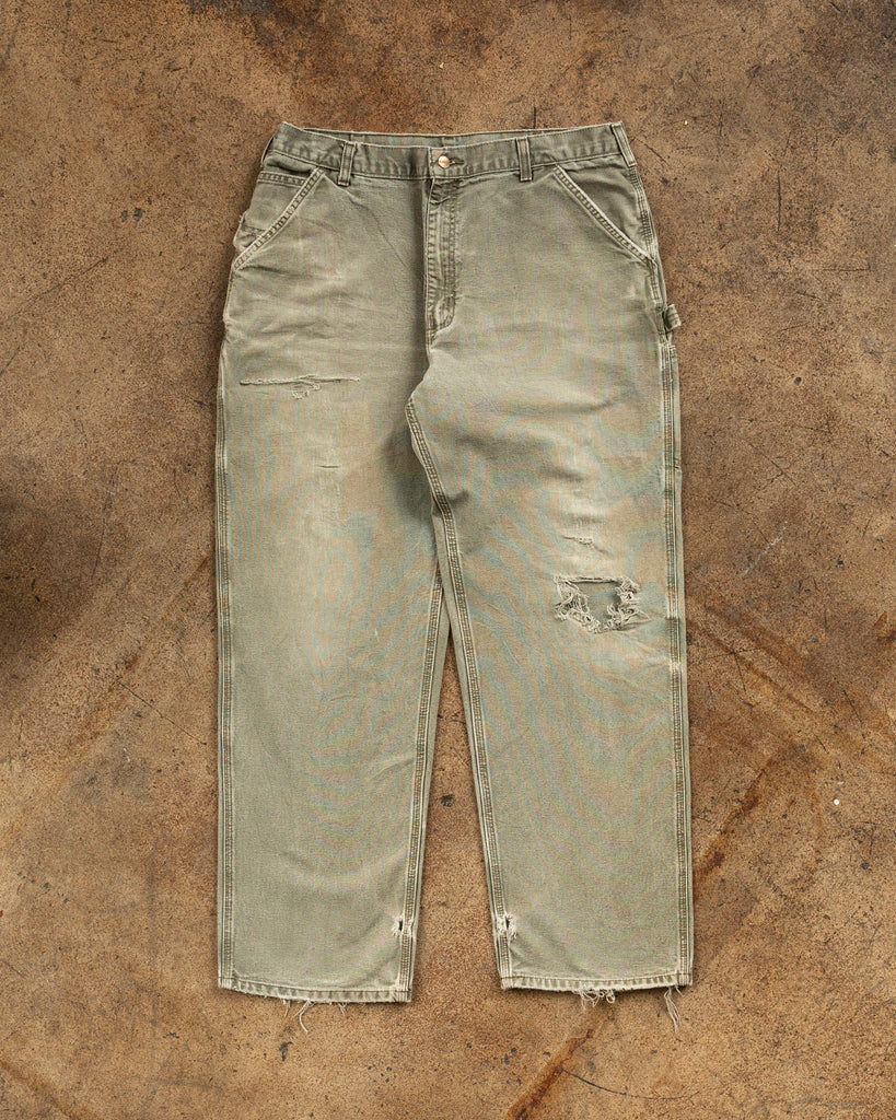 Carhartt Sage Green Thrashed & Repaired Double Knee Work Pants - 1990s
