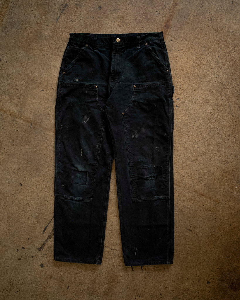 Carhartt Faded Black Painted & Distressed Double Knee Work Pants - 1990s