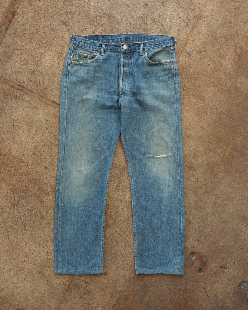 Levi's 501 Faded Blue Repaired Jeans - 1990s