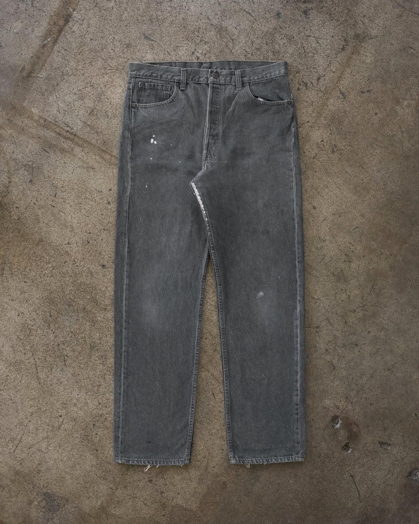 Levi's 501 Faded Charcoal Grey Repaired Jeans - 1990s