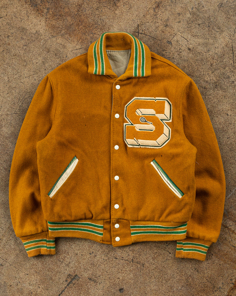 Mustard "S" Wool Reversible Varsity Jacket - 1980s