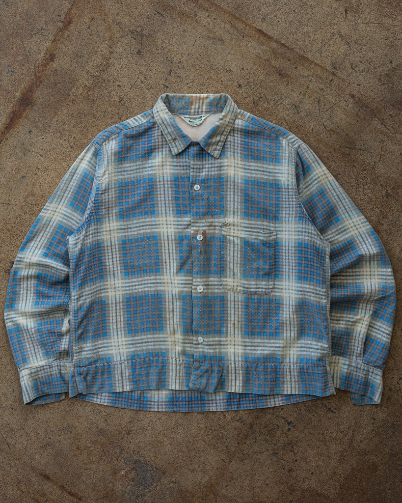 Light Blue Plaid Cropped Wool Flannel Shirt - 1950s