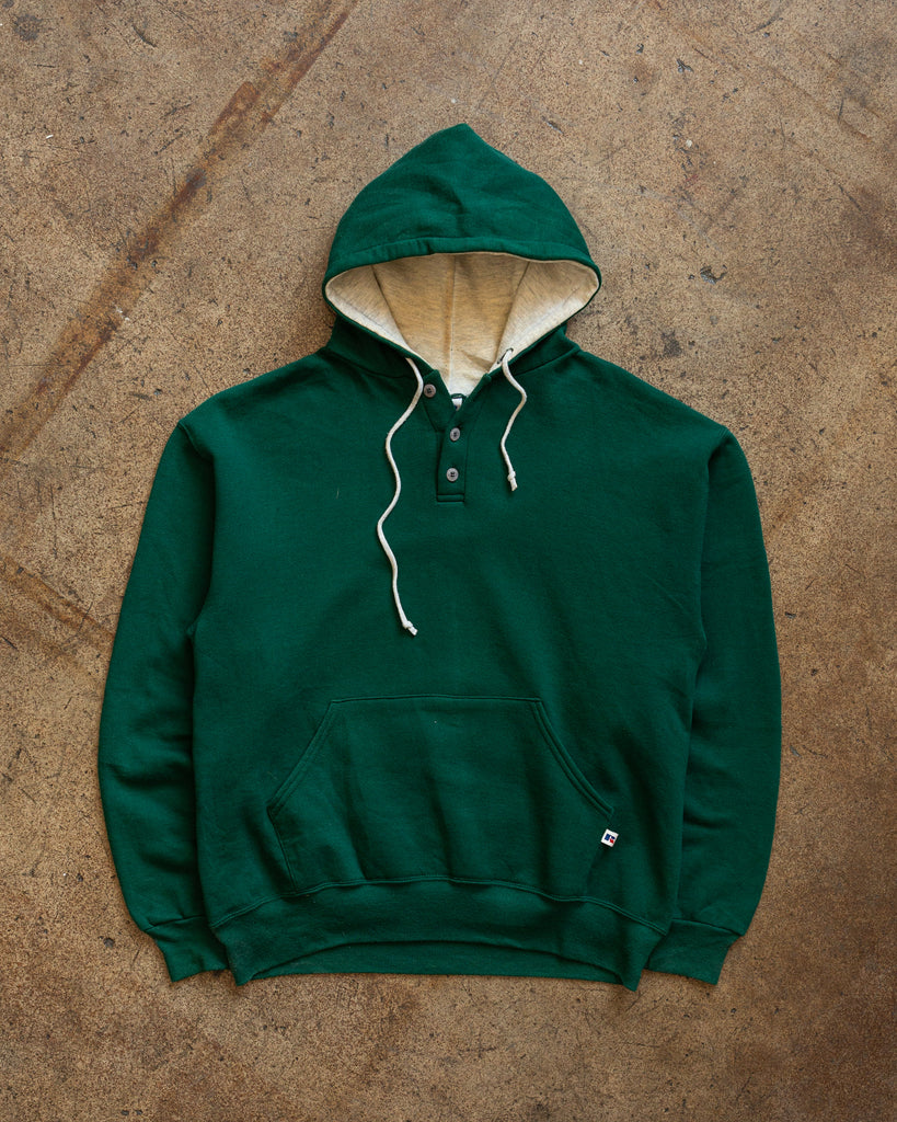 Russell Pine Green Button Up Hooded Sweatshirt - 1990s