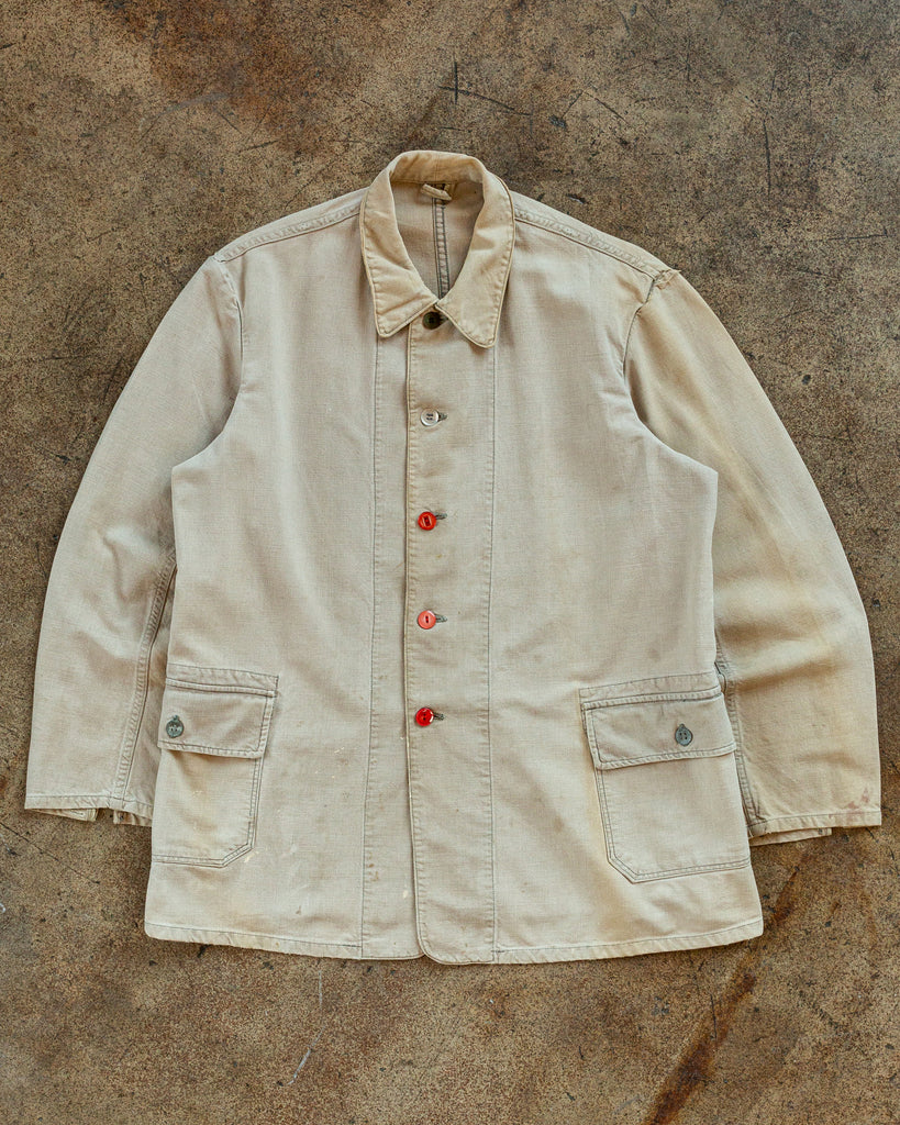 Sun Faded Taupe Distressed Chore Coat - 1940s/50s