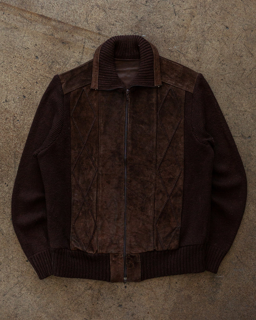 Sun Faded Green Cropped Suede Shearling Jacket - 1960s