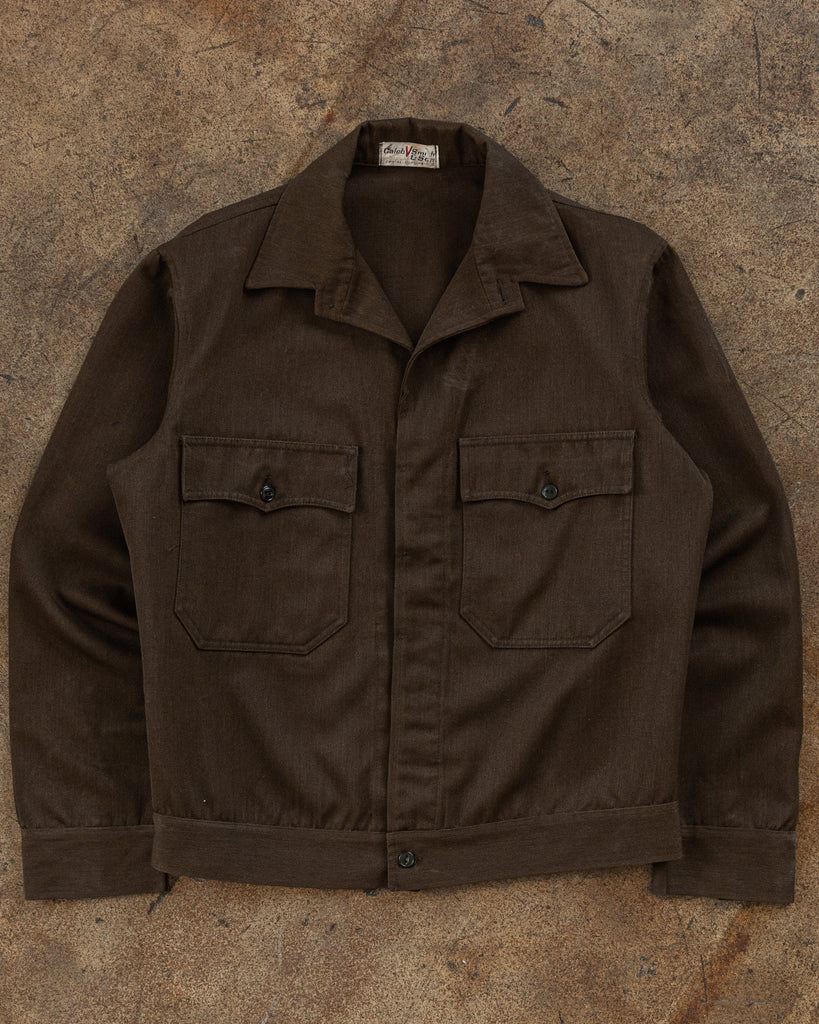 Brown Herringbone Twill High-Neck Jacket - 1990s