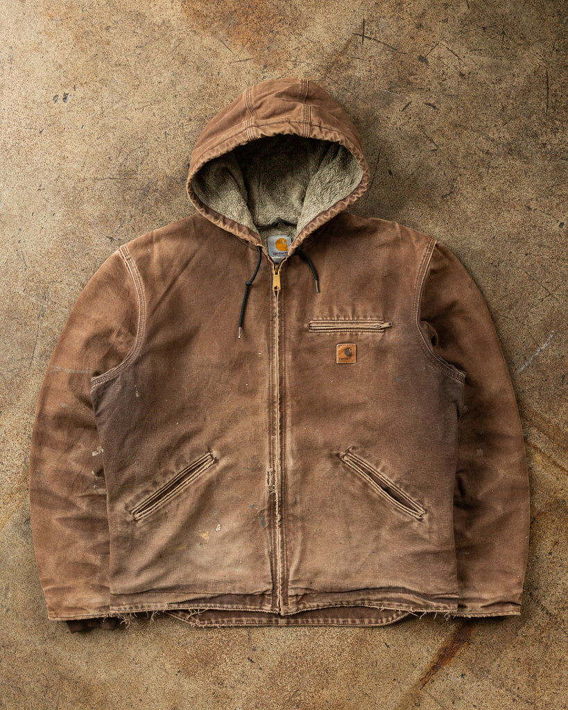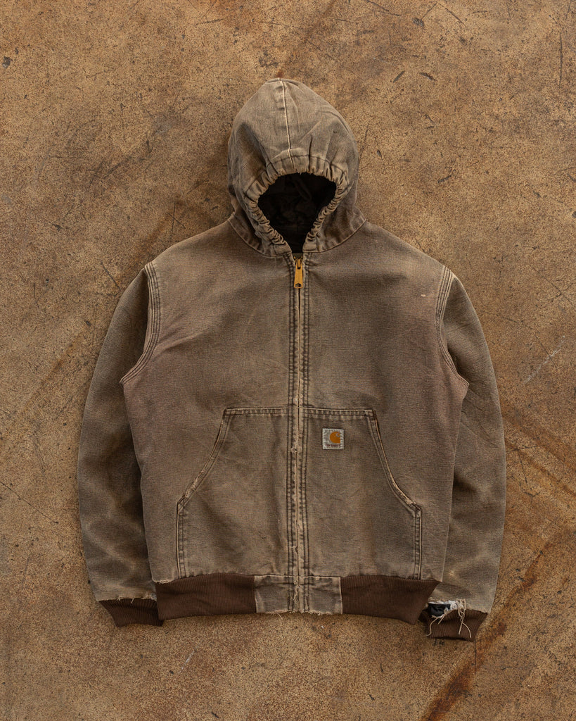 Carhartt Faded Brown Distressed Hooded Work Jacket - 1990s