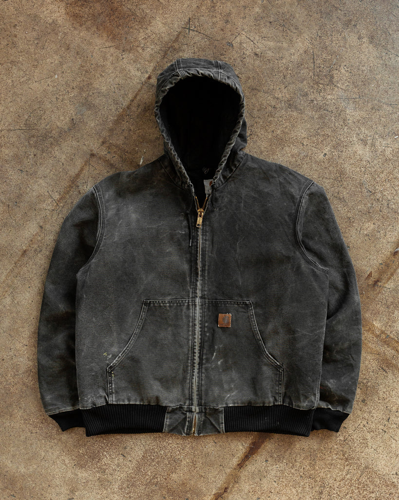 Carhartt Faded Black Distressed Hooded Work Jacket - 1990s