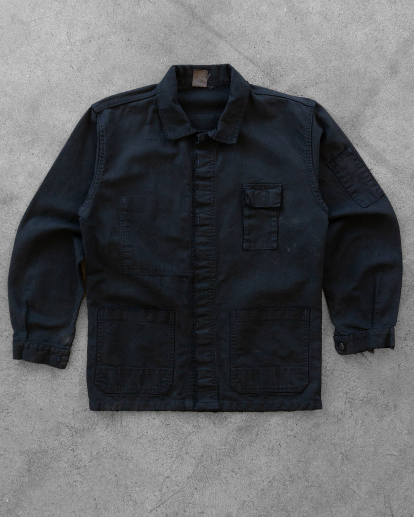 Midnight Navy Over-Dyed Distressed Zip-Up Chore Coat - 1960s/70s