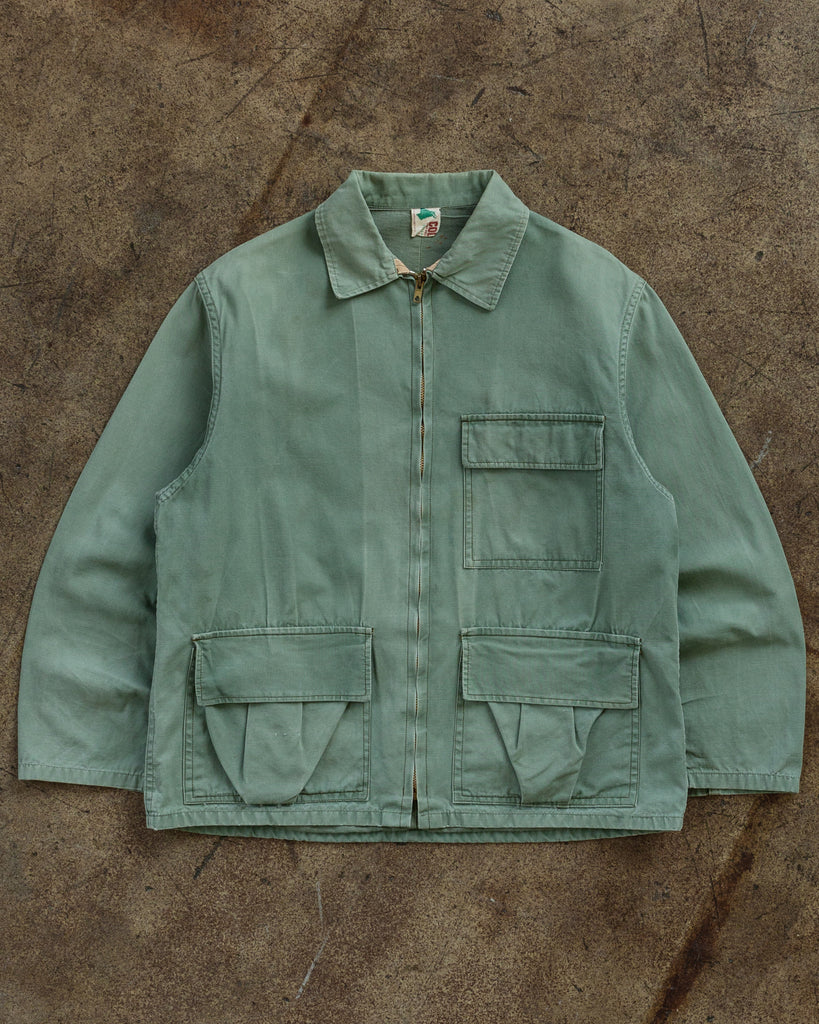 L.L. Bean Sun Faded Forest Green Chore Coat - 1990s