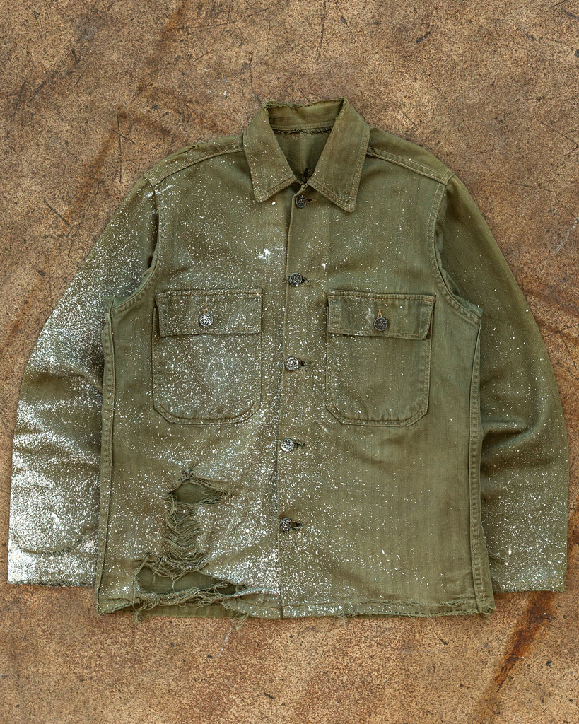 US Army 13 Star HBT Olive Painted & Repaired Button Up - 1940s/50s