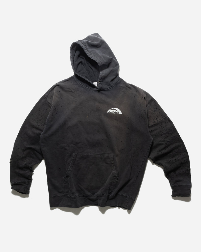 VINTAGE 2000S 'RPM' TATTERED SUN FADED BLACK HOODED SWEATSHIRT
