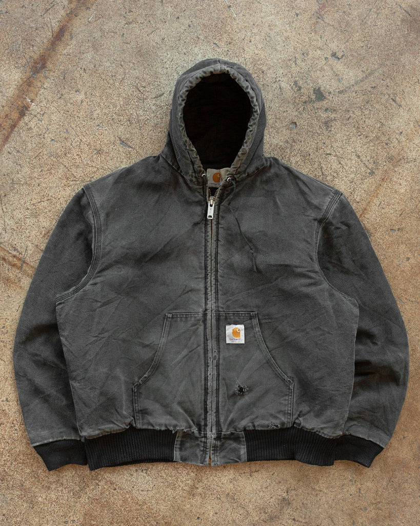 Carhartt Sun Faded Charcoal Black Hooded Work Jacket - 1990s
