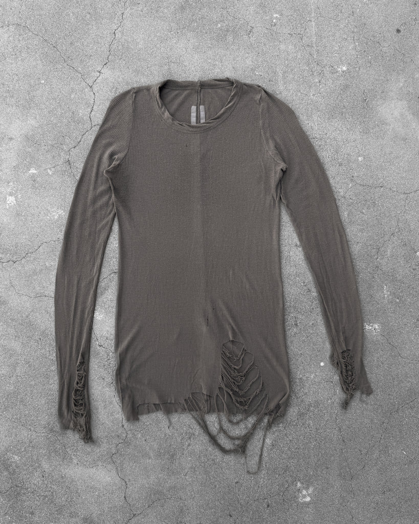 RICK OWENS SS2021 'PHLEGETHON' DISTRESSED RIBBED LONG-SLEEVE TEE
