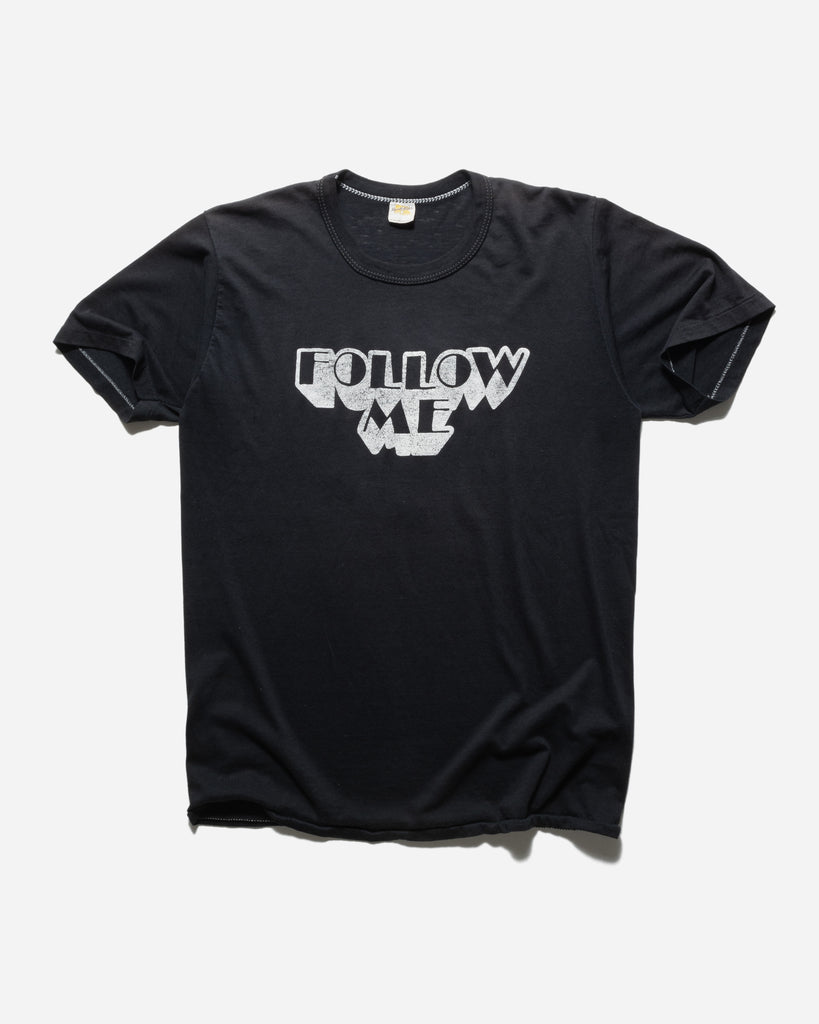 VINTAGE 1970S RUSSELL 'FOLLOW ME' FADED BLACK TEE