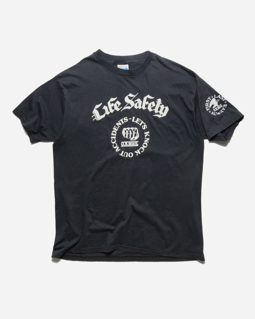 VINTAGE 1980S 'LIFE SAFETY' FADED BLACK TEE