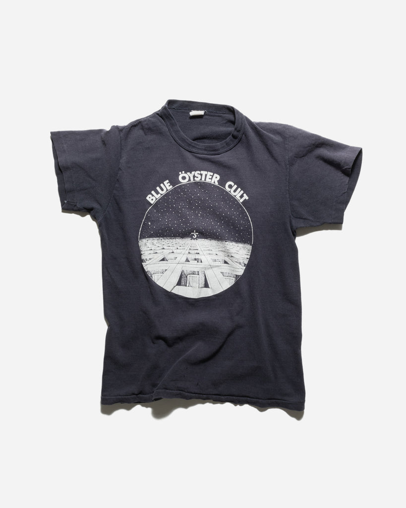 VINTAGE 1970S BLUE ÖYSTER CULT SELF TITLED FADED SHRUNKEN FIT BAND TEE