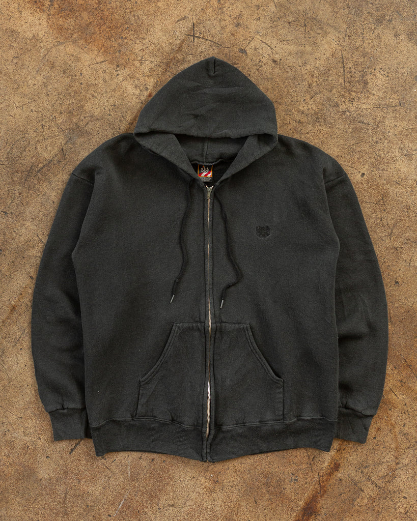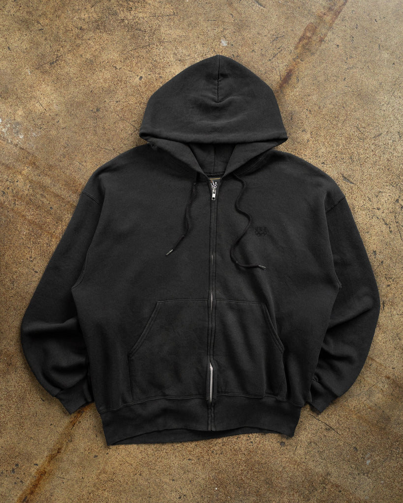 Faded Black Hooded Zip-Up Sweatshirt - 1990s