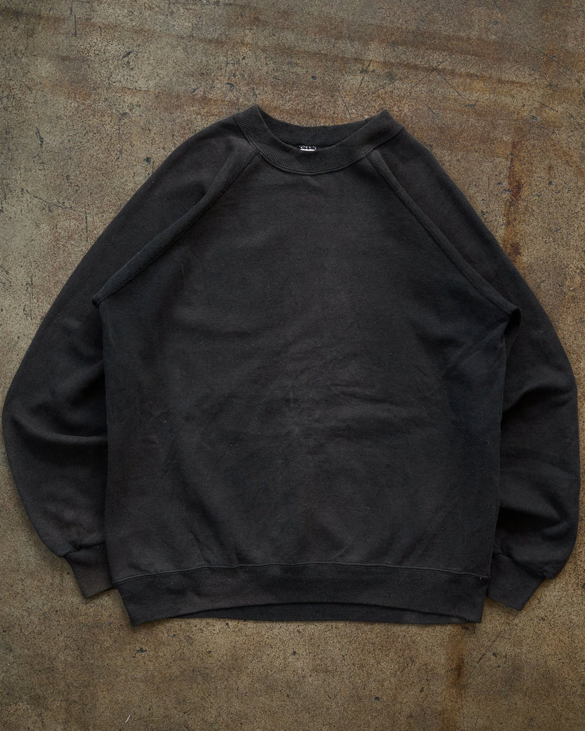 Hanes Her Way Faded Black Blank Raglan Sweatshirt - 1990s