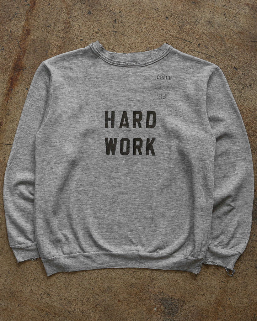 Heather Grey "Hard Work" Crewneck Sweatshirt - 1980s