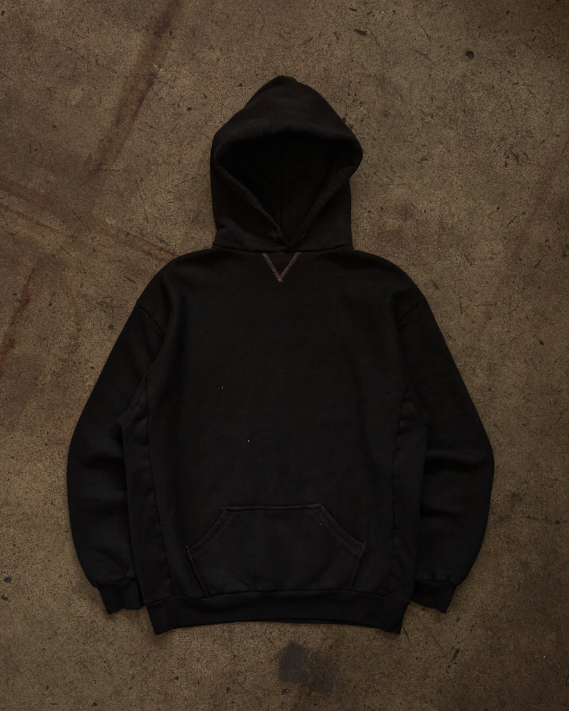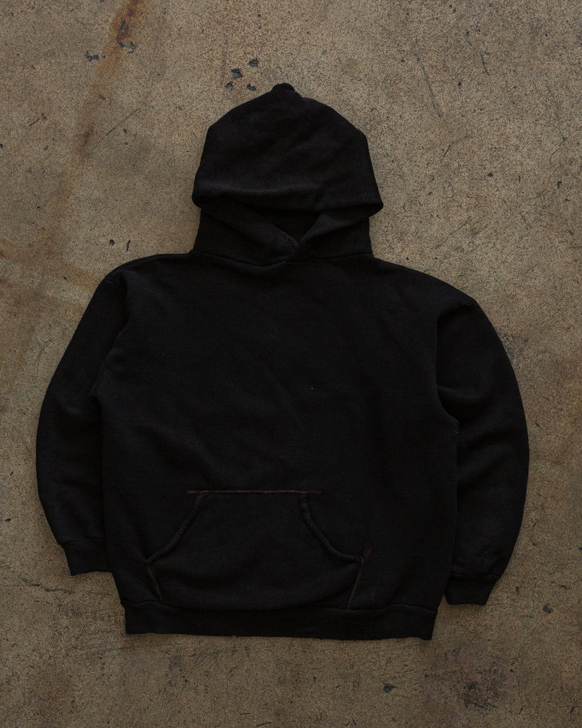 Over-Dyed Black Blank Hooded Crewneck Sweatshirt - 1990s
