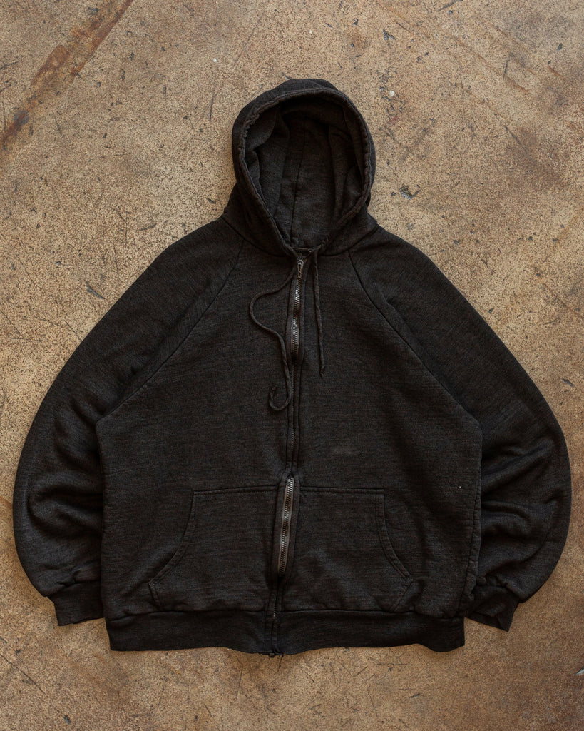 Over Dyed Charcoal Blank Zip- Up Hooded Sweatshirt - 1990s