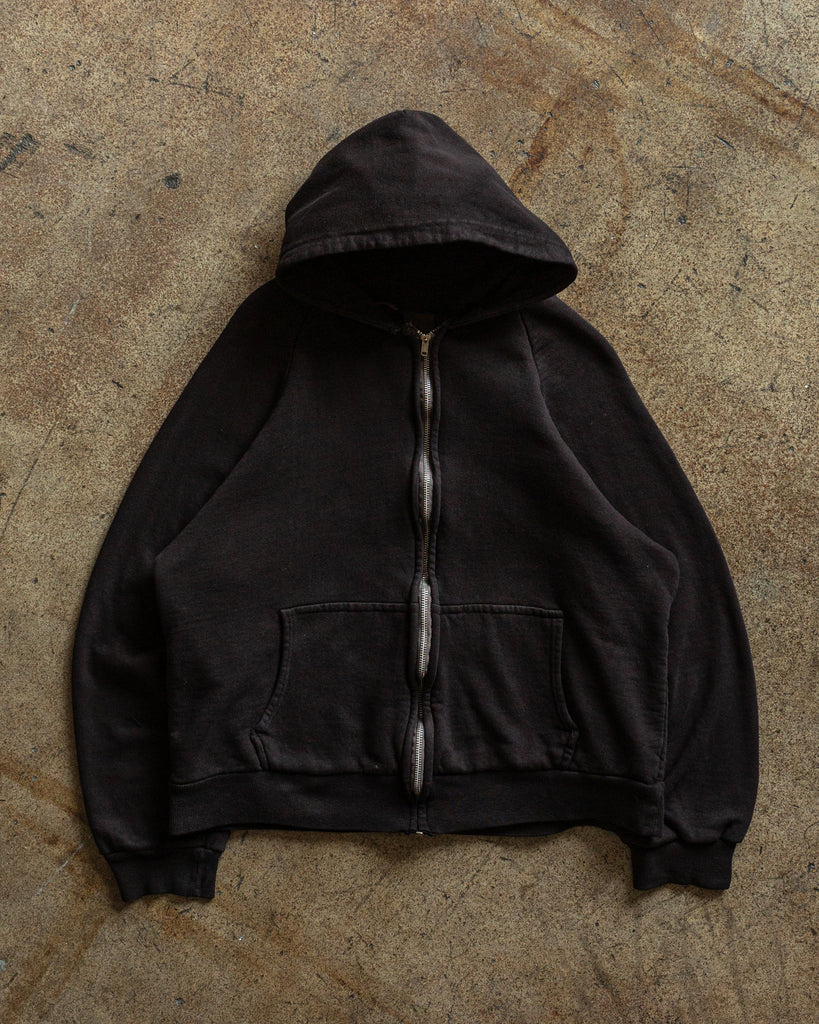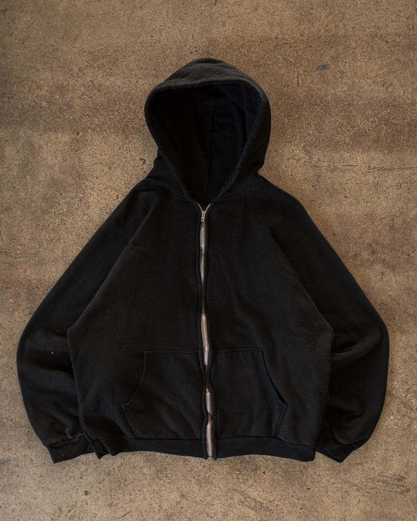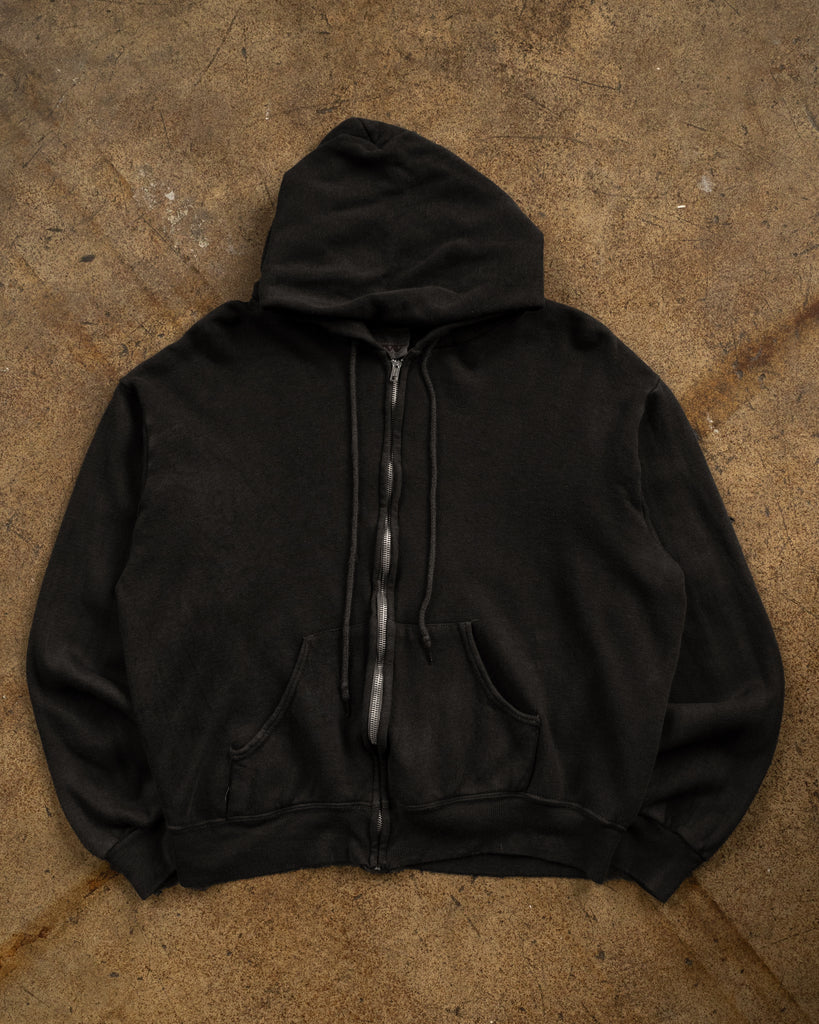 Over-Dyed Black Blank Zip-Up Hooded Sweatshirt - 1990s