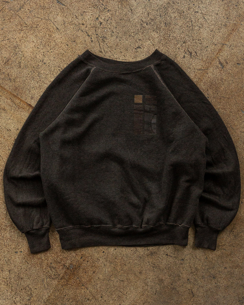 Over-Dyed Black Graphic Raglan Sweatshirt - 1980s