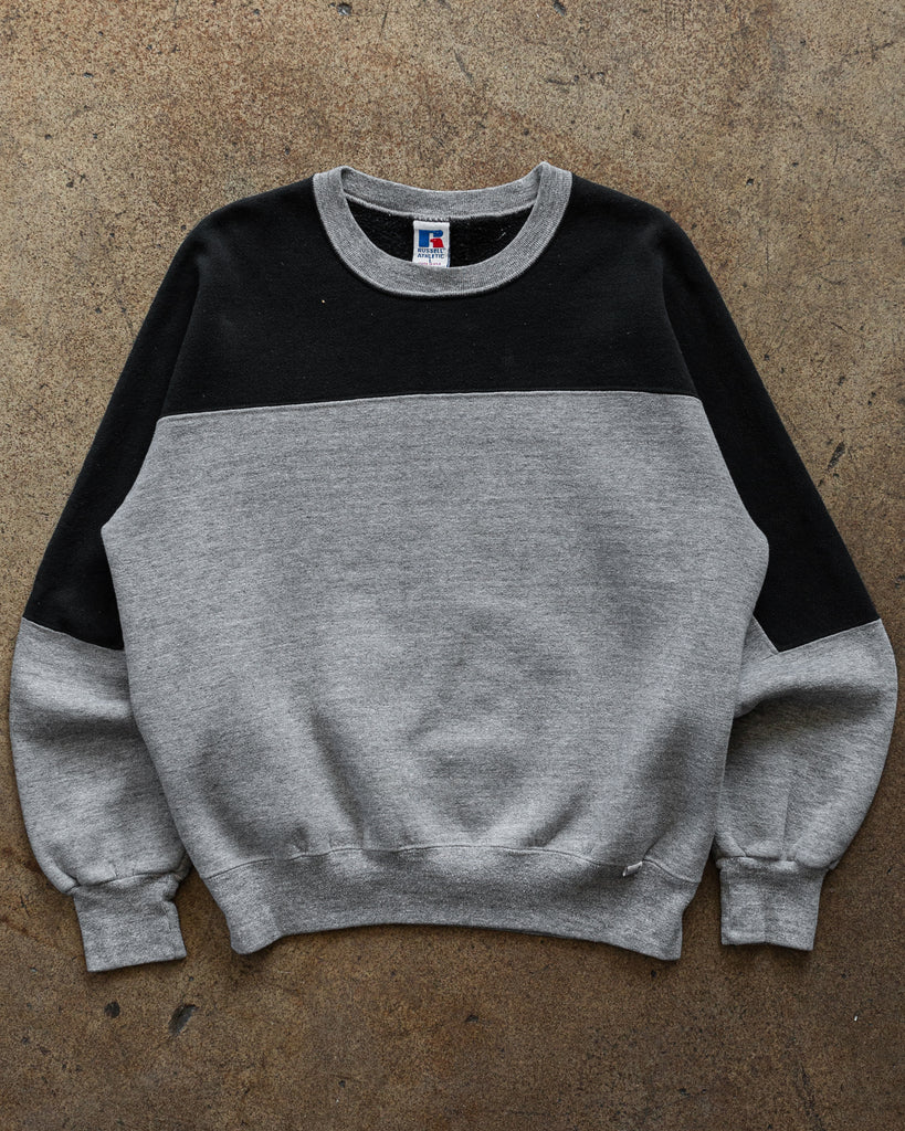 Russell Two-Tone Heather Grey Henley Blank Sweatshirt - 1990s