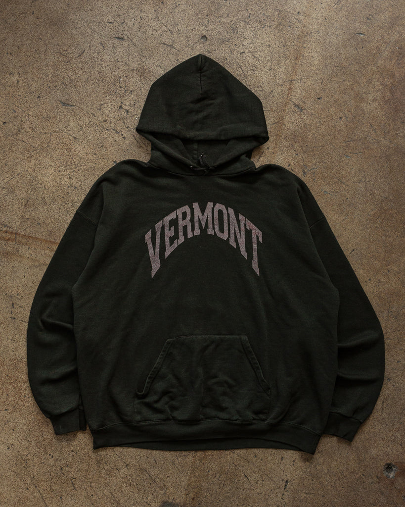 "Vermont" Overdyed Black Hooded Sweatshirt - 1990s