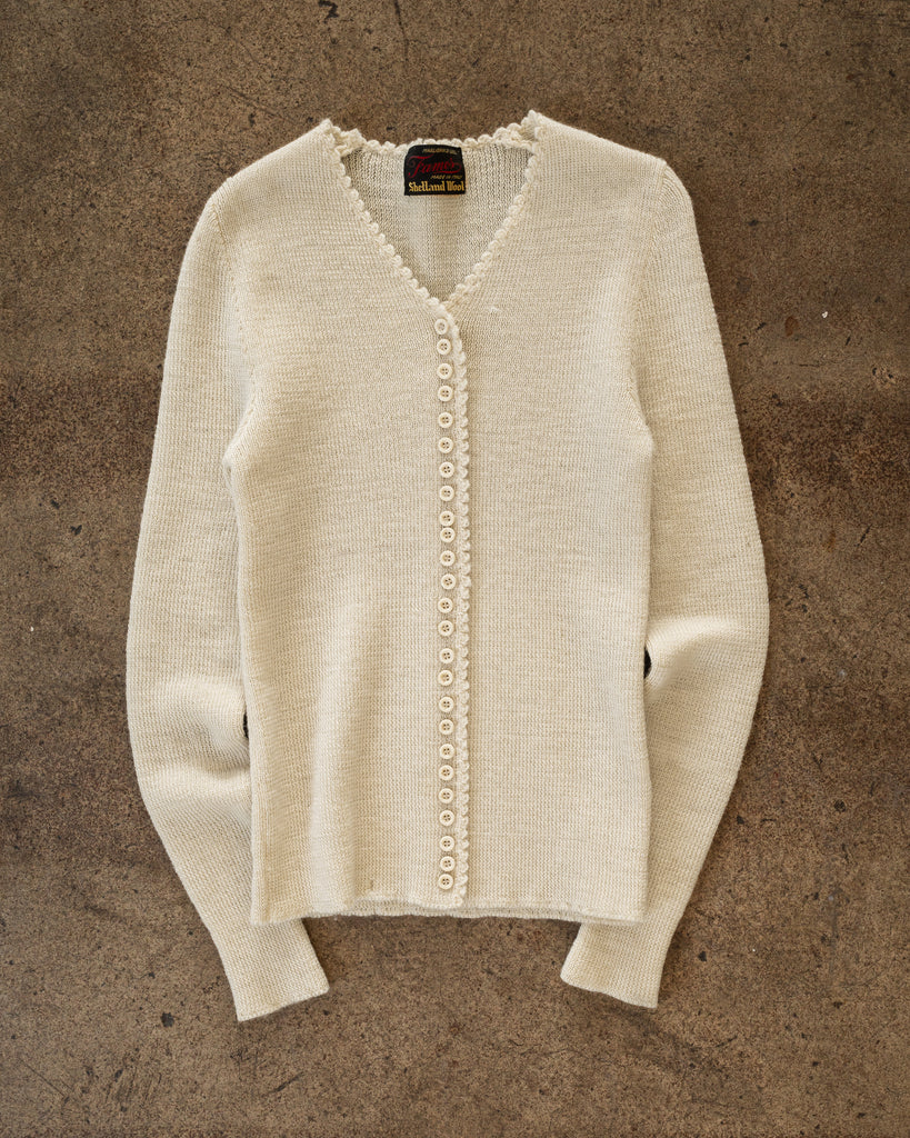 Basketweave Turtleneck Cardigan Knitted Sweatshirt - 1980s