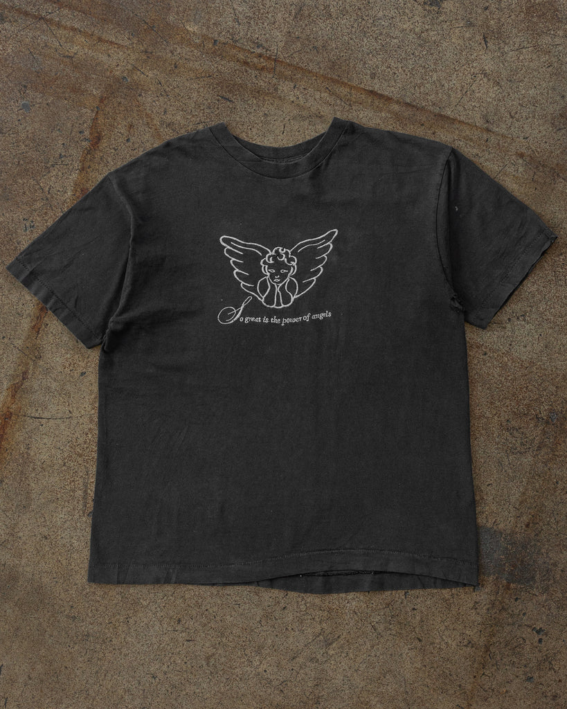 Single Stitched "So great is the power of Angels" Distressed Embroidered Tee - 1990s
