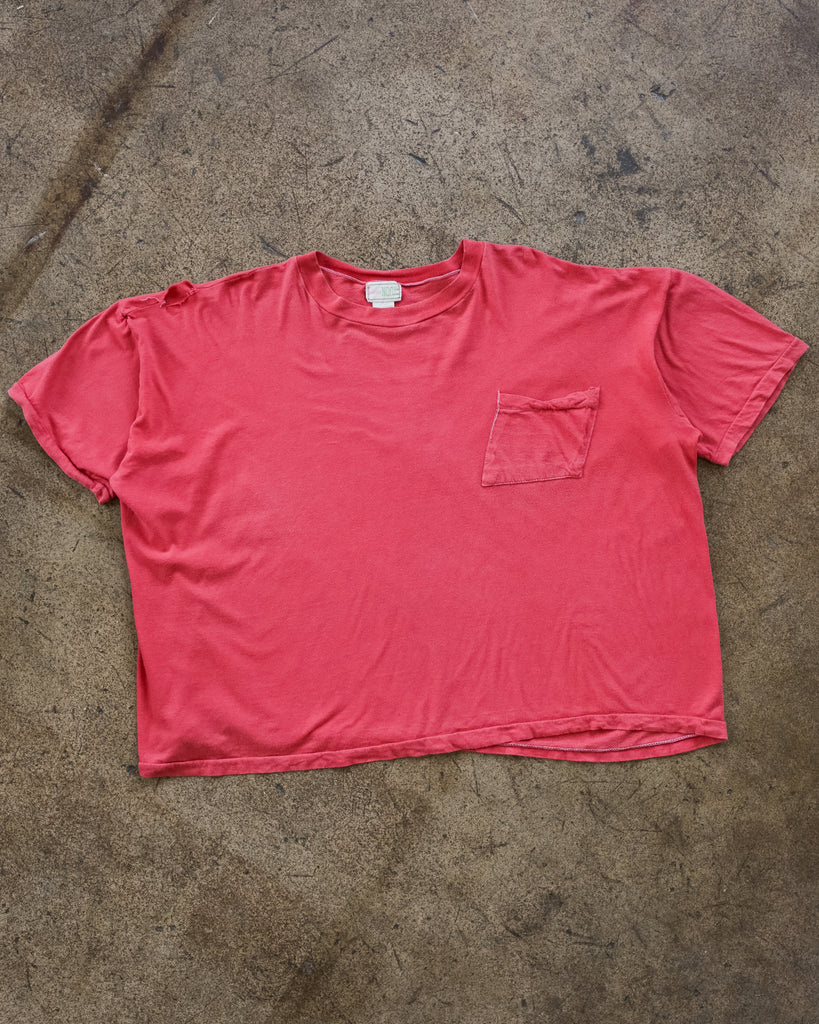 Single Stitched Blank Faded Red Cropped Pocket Tee - 1980s