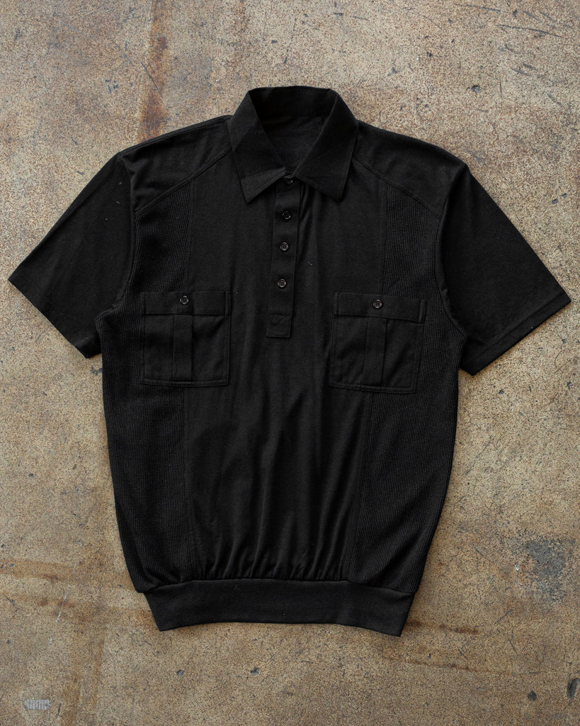 Single Stitched Black Mesh Paneled Polo Shirt - 1980s