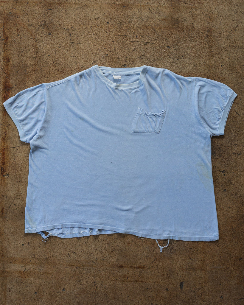 Single Stitched Blue Blank Cropped Pocket Tee - 1990s