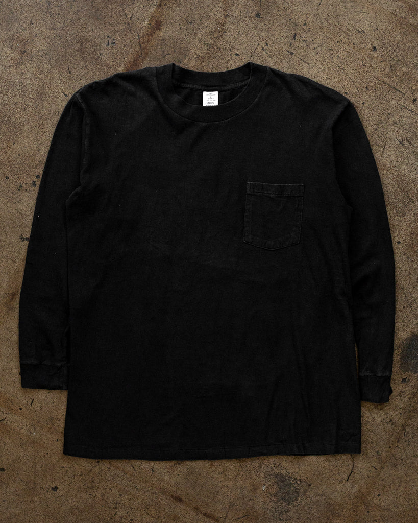 Single Stitched Bleached Black Long Sleeve Pocket Tee - 1990s