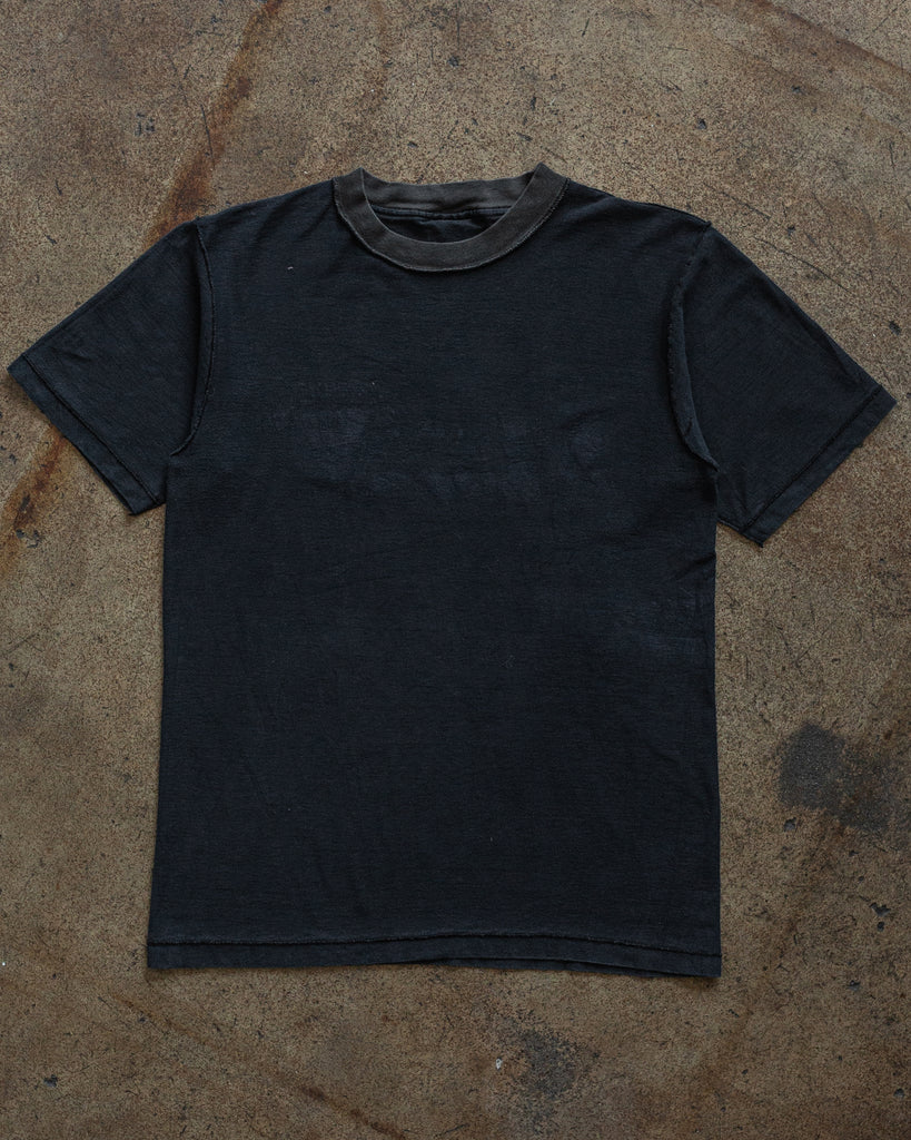 Single Stitched Distressed Faded Blue Black Blank Tee - 1980s