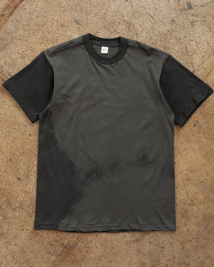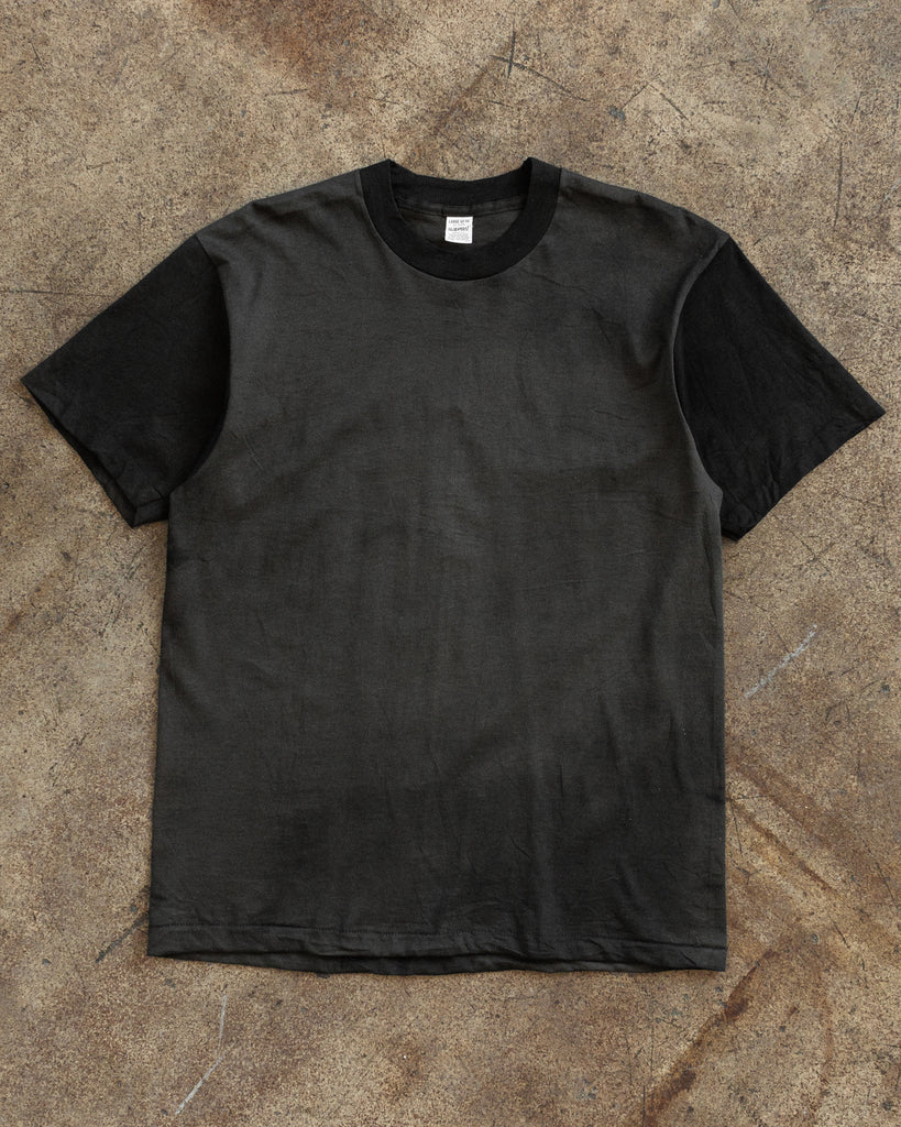 Single Stitched Sun Bleached Color-block Black Blank Tee - 1990s