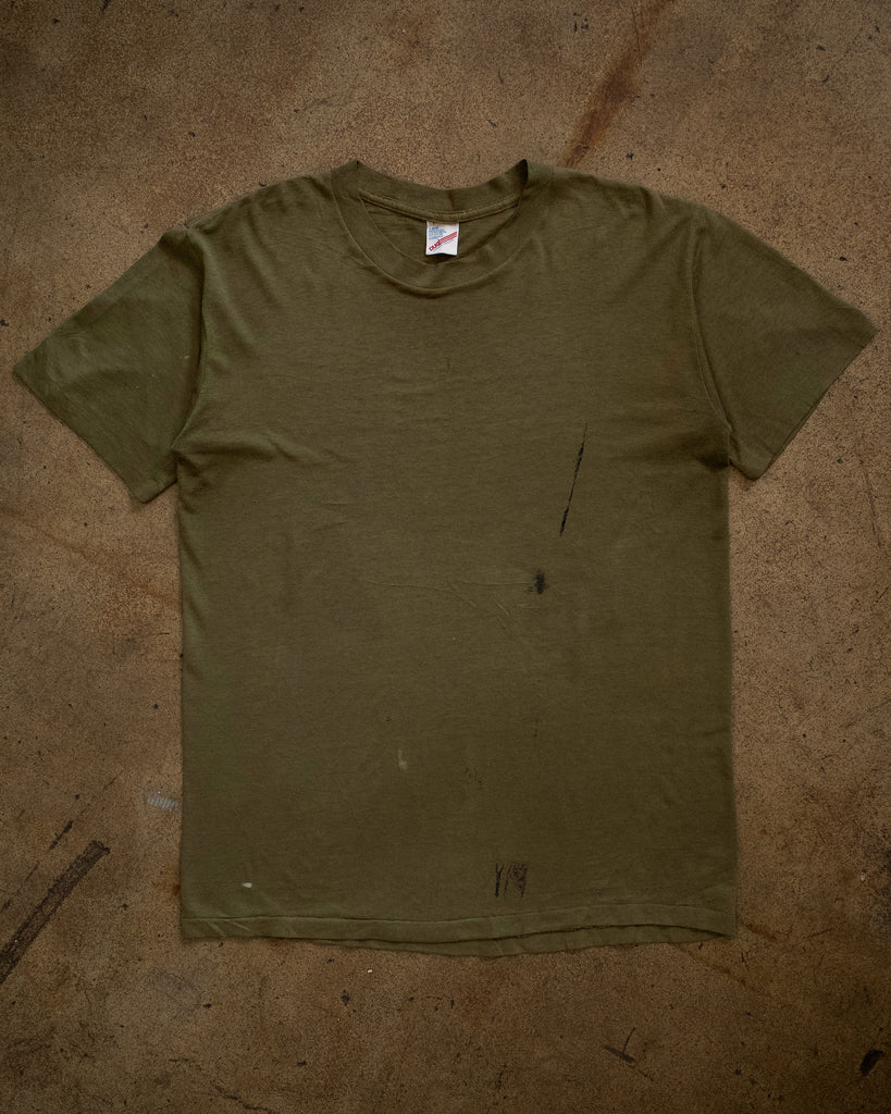 Single Stitched Sage Green Thrashed Blank Tee - 1980s